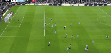 第49分钟,阿克45度传中,努内斯没能顶到皮球却晃了戈登一下,差点造成戈登的自摆乌龙。