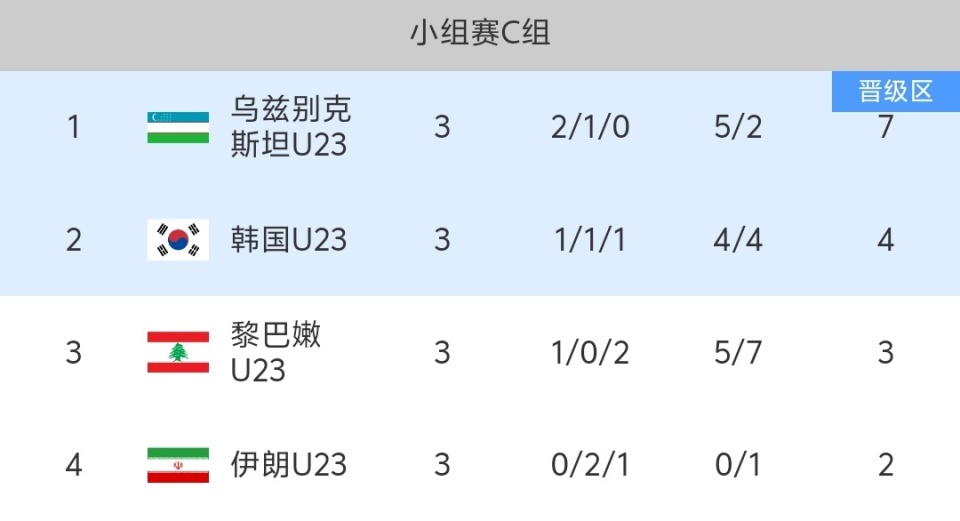韩国队在末轮输给了乌兹别克斯坦,不过幸运的是伊朗不敌黎巴嫩,让韩国最终拿到了小组第二,伊朗的青年军实力确实不咋地,韩国其实也好不到哪去,他们虽然控球率很高,但是创造机会的能力太差,乌兹别克斯坦一次世界波一次边路传中解决了问题,比较有意思的是,中国队淘汰赛将会遭遇韩国这个小组的球队,我们能顺利晋级的话,将会面对韩国或者乌兹别克斯坦!