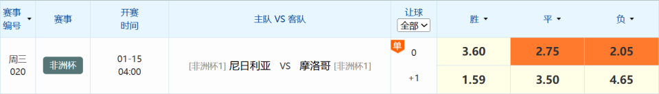 今日我们来看一场非洲杯的比赛,1月15日周四凌晨4点,尼日利亚对阵摩洛哥。