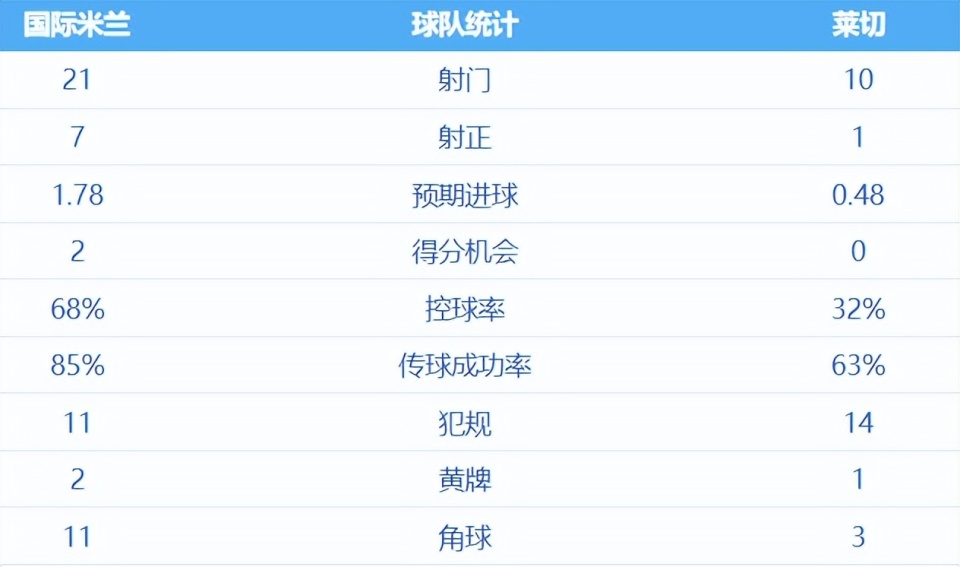 虽然1-0胜小辣椒莱切的比分不大,不过在先赛情况下蓝黑军能拿满三分,就是个不错的赛果。就此他们扩大了优势到6分,相对稳妥,也是把压力抛给米兰。