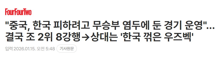 韩媒表示:“乌兹别克斯坦绝非一个可以轻视的对手,他们是曾以2:0击败韩国队的劲旅。这支队伍的球员平均年龄比韩国队小两岁左右,凭借扎实的团队配合与充沛的体能优势压制了韩国队。值得一提的是,乌兹别克斯坦队的两粒进球均来自球员的远射破门,可见队内球员的个人能力同样不容小觑,这也是外界不看好中国U23晋级四强的原因所在。”