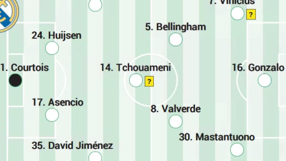 中场: 巴尔韦德、楚阿梅尼、贝林厄姆