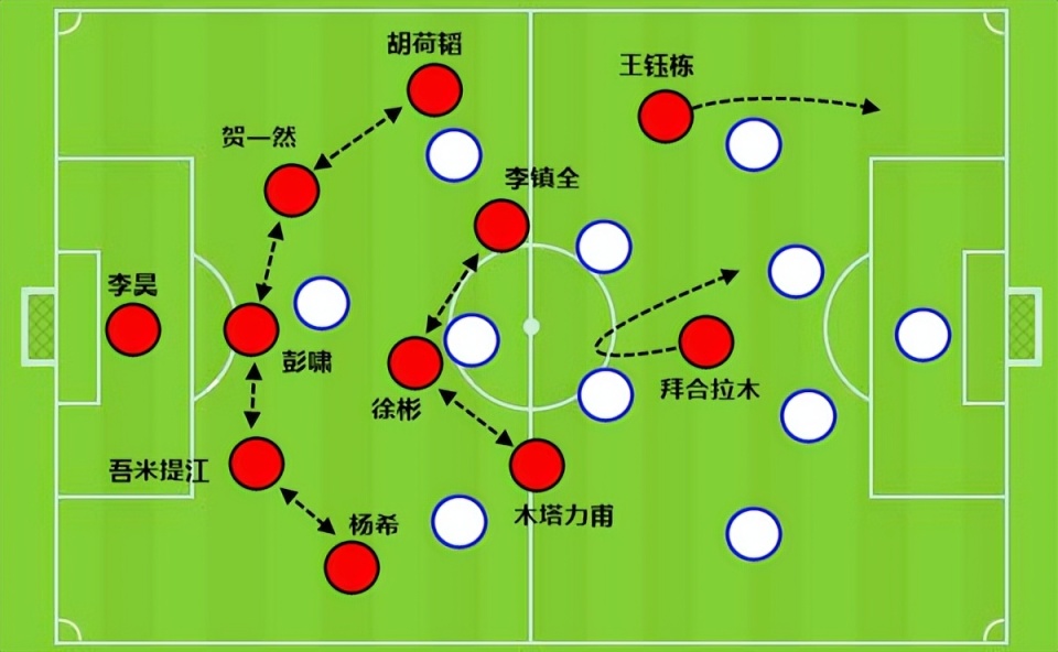 先手摆出一个532阵型,拜合拉木并不能真正落防到中场,所以先手对方还能获得一些机会,不过一方面门神李昊表现神勇,另外一方面我们的中场跑动能力很强,保证了很好的覆盖到位率,让对手无法破防。