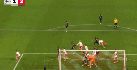 第82分钟,拜仁锁定胜局:奥利塞角球传中,约纳坦-塔抢点轻轻一蹭入网,3-1!