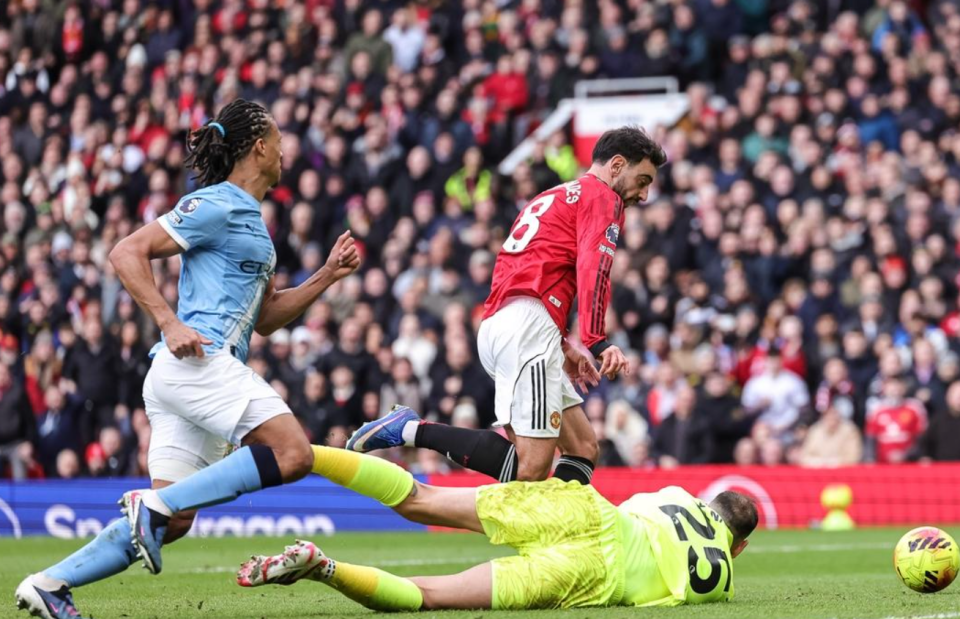 第65分钟,曼联终于进球了!依靠一次反击机会。布鲁诺-费尔南德斯把球分给左侧的姆伯莫。姆伯莫面对门将,直接低射远角,球进了!曼城轰然倒下!2分钟后,迪亚洛差一点扩大比分,他的低射踢偏了。第76分钟,曼联再进一球。库尼亚在右侧下底传中,多古门前包抄,把球打进!瓜迪奥拉气炸了。补时阶段,芒特进球因为越位被吹掉。最终,曼联2-0完胜曼城。曼城争冠形势恶化。