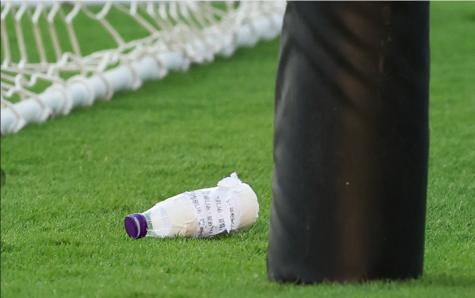 对此,网友们纷纷表示,“守门员看瓶子对对手就是一种震慑。其实瓶子上写的可能是“多看几秒,我也不知道他射哪里”。”