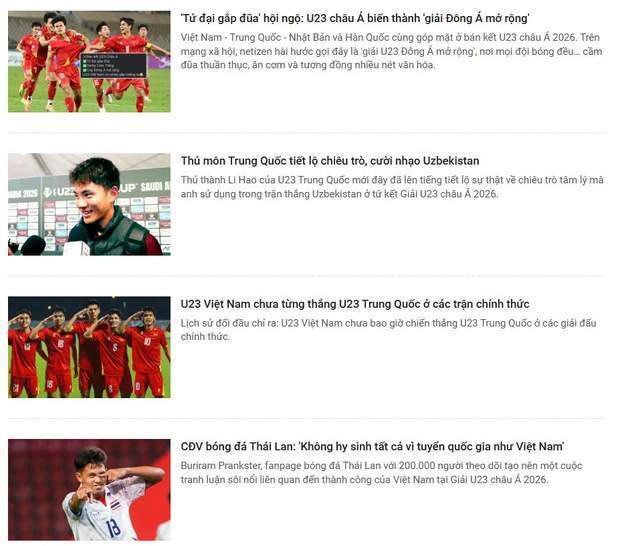 骄兵必败!感觉越南看到半决赛踢中国队后,有点太得意忘形了。从昨晚到今天,越南媒体体育247、青年报等开始铺天盖地报道这场半决赛,而且花了大量篇幅报道中国U23,提出了击败中国队的5大利好,就好像中国队已经是他们囊中之物了,不过,他们越轻敌越有可能是我们中国队的好消息!