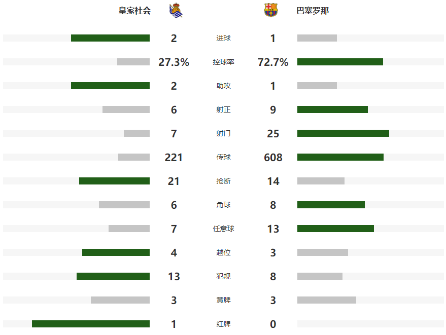 皇家社会(4-4-2):雷米罗;阿兰布鲁(82'卡莱塔-卡尔),马丁,苏维尔迪亚,塞尔希奥-戈麦斯(69'穆尼奥斯);久保健英(69'巴雷内切亚),图里恩特斯(58'戈罗查特吉),索莱尔,格德斯;布莱斯-门德斯(58'奥德里奥索拉),奥亚萨瓦尔