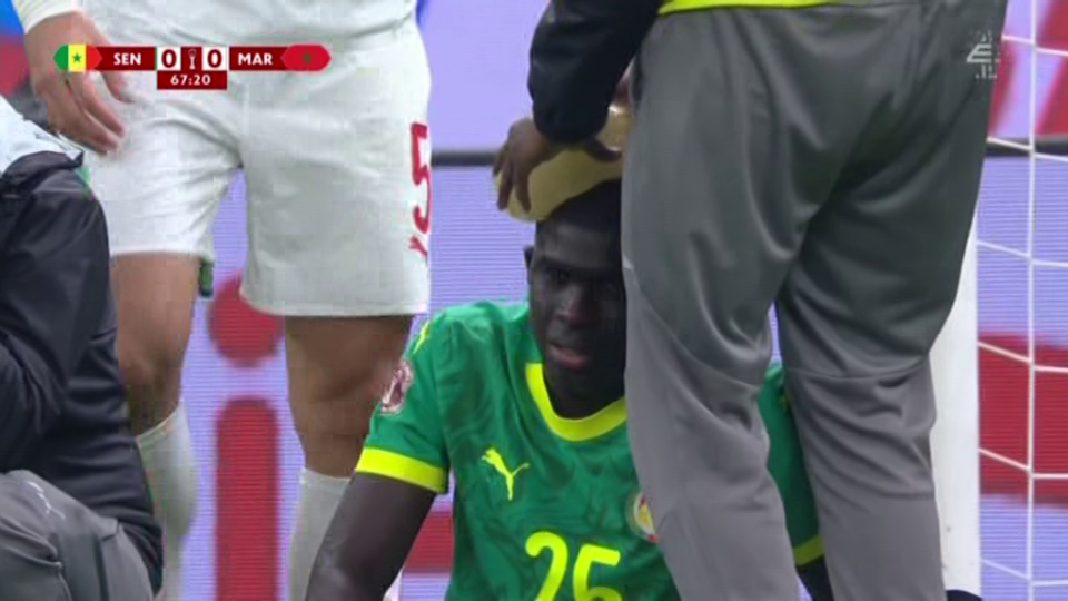 比赛第66分钟,摩洛哥中场(罗马)尼尔·埃尔·艾纳维与塞内加尔后卫(西汉姆)马利克·迪乌夫发生严重的头部相撞,艾纳维满脸鲜血倒地。