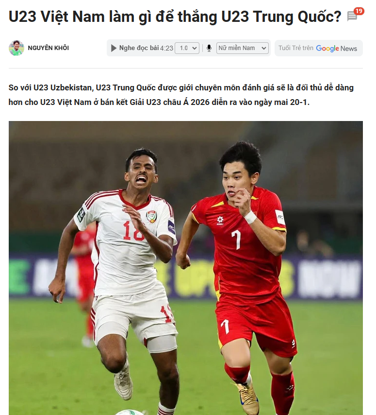 “在盐城、成都,越南队两次对阵中国队时取得一胜一平的成绩,这反映了越南队的进步,也为越南球员在半决赛里注入了信心。然而,热身赛和正式比赛完全不同,中国队在U23亚洲杯的表现要好得多,而且两次未能战胜越南队,安东尼奥会对越南队进行深入分析,以确保球队取得好成绩。”