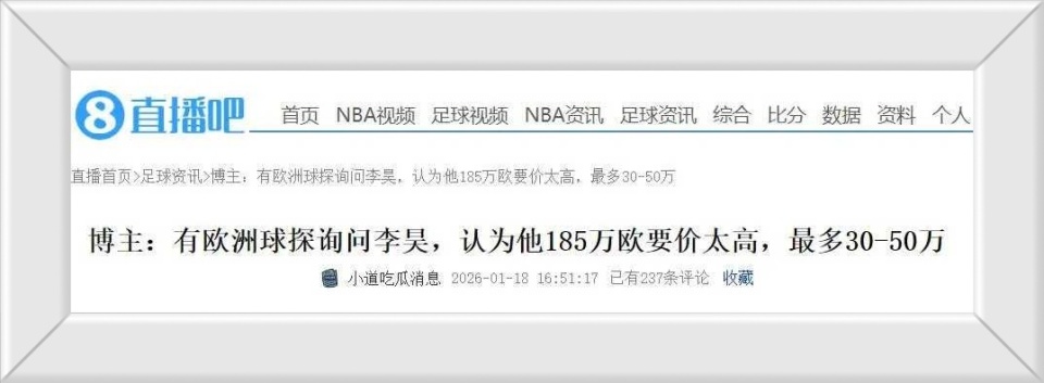 有消息显示,有欧洲球探已经看好这位中国男足未来国门,有意抛出橄榄枝,但30-50万欧元的报价偏低,与俱乐部185万欧元的要价相差较大。