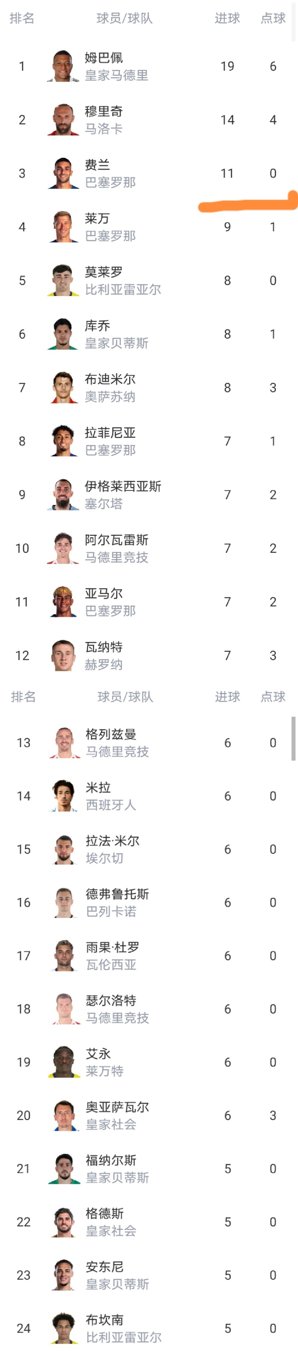 射手榜方面,只有姆巴佩、穆里奇、费兰三人进球数达到了两位数,这也说明西甲的防守强度一点不差,没有一点实力的话,你也很难在西甲有所作为的。