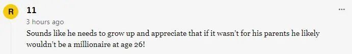 听着他真该成熟点了,要认识到没有他父母的帮助,他怎么可能26岁就成了百万富翁!