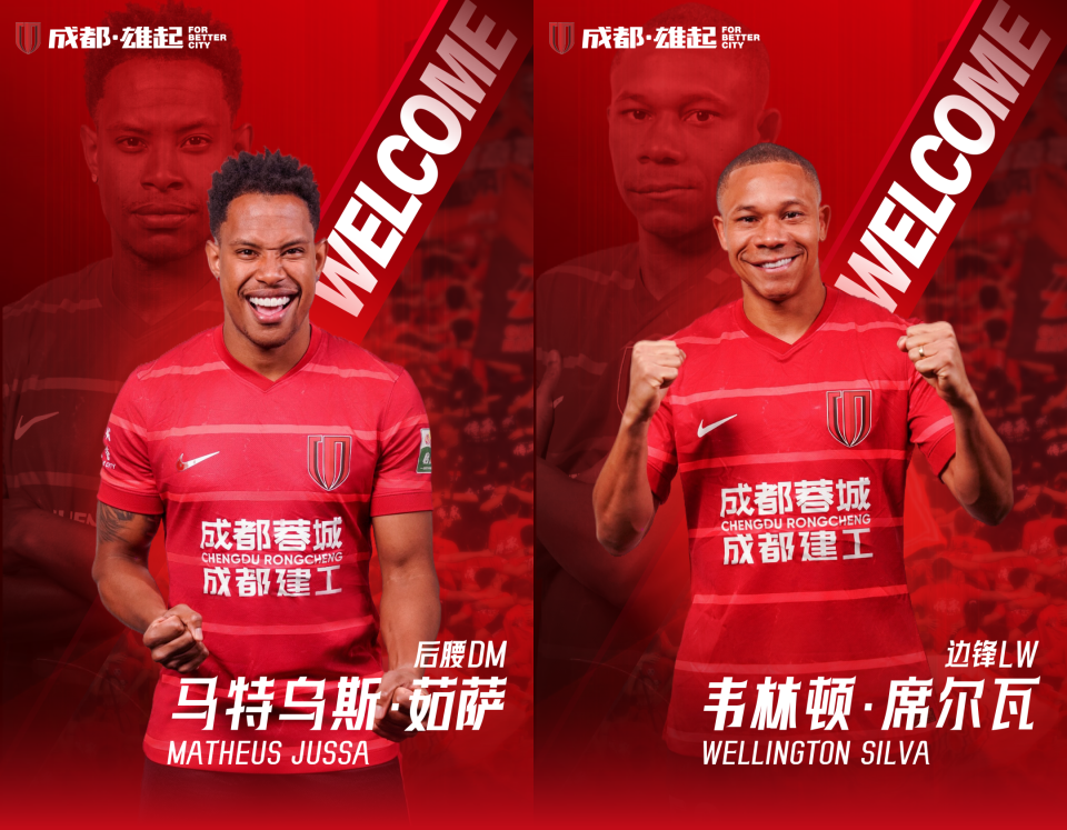 成都蓉城官方宣布茹萨、韦林顿加盟。详细>>