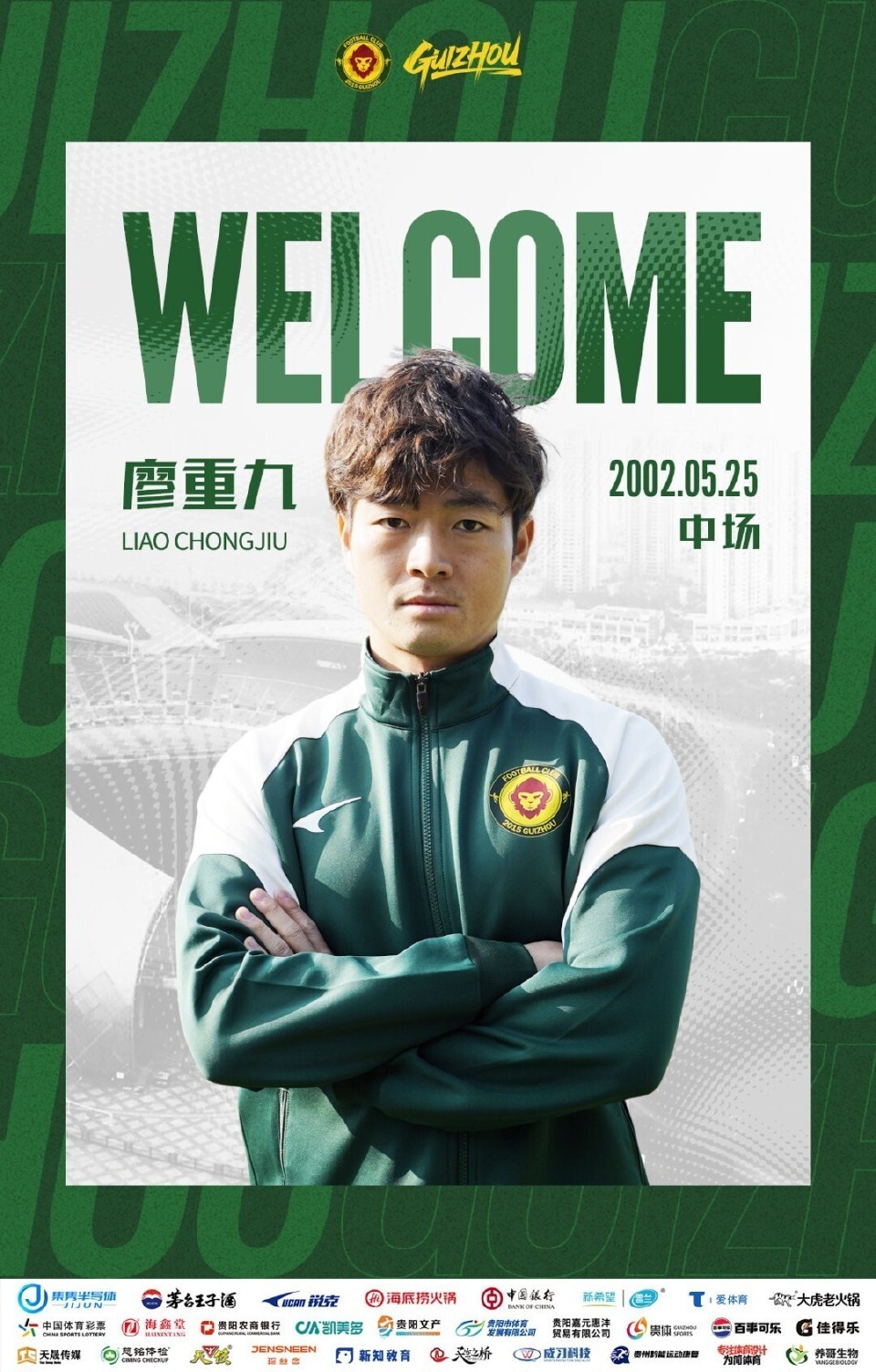 贵州筑城竞技官方宣布,原上海海港B队球员廖重九加盟俱乐部。详细>>