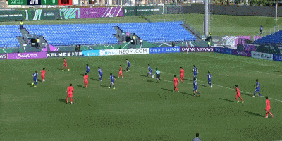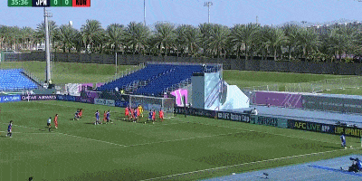 第26分钟,韩国左路定位球到禁区,金龙鹤头球攻门直奔球门右侧死角,皮球被荒木琉伟扑出。