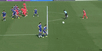 第9分钟,日本右路传球到禁区,点球点附近的道协丰回做,弧顶前的小泉佳弦抽射打高。