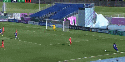 第44分钟,韩国后场解围不远,大禁区弧里的小泉佳弦凌空抽射稍稍偏出左侧门柱。