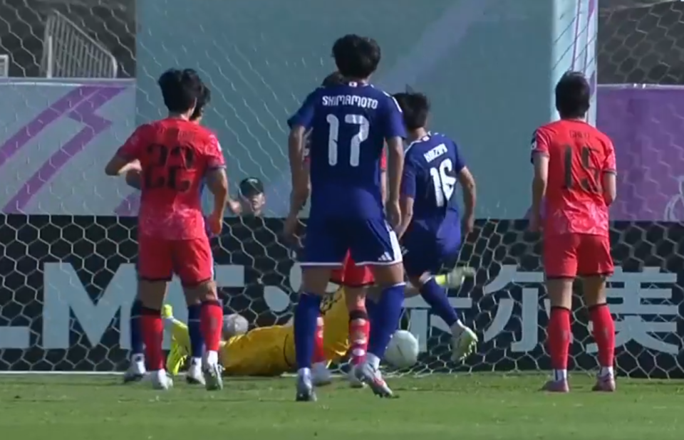 第36分钟,日本队进球了!小泉佳弦在门前混战中,抓住机会近距离补射破门,打破了僵局。日本球员狂欢庆祝。半场结束,日本队1-0领先韩国队。日本队上半场控球率54%,9次射门,4次射正,进了1球。而韩国队上半场只有1次射门,没能进球。