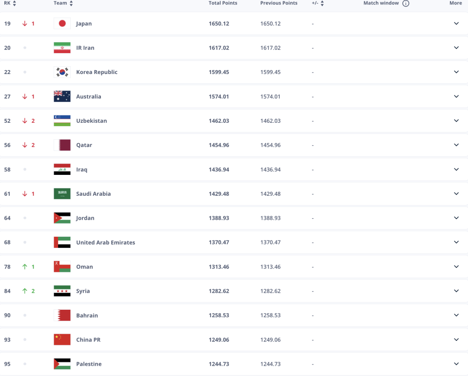FIFA公布26年首期世界排名:摩洛哥升至第8,国足第93
