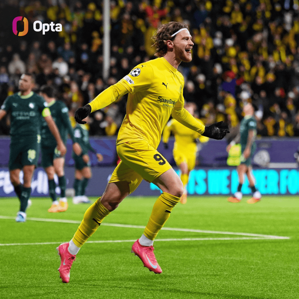 根据数据网站Opta的统计,他也成为了2019年4月的孙兴慜(开场10分钟双响)以来,在欧冠对阵曼城时最早完成梅开二度的球员。