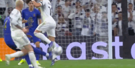 第31分钟,戈洛温左路突破横传,特泽离门30米外起脚兜射,直奔球门右上角而去,击中横梁弹出,皇马逃过一劫。