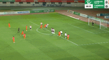 刘浩帆的出球能力是很强的,他又一次找到了被放空的鲍盛鑫,后者拿球之后选择传中球送入禁区。这时候后点位置包抄的是右边翼卫杨希,可惜起跳时机错开了一点,没能顶到皮球。