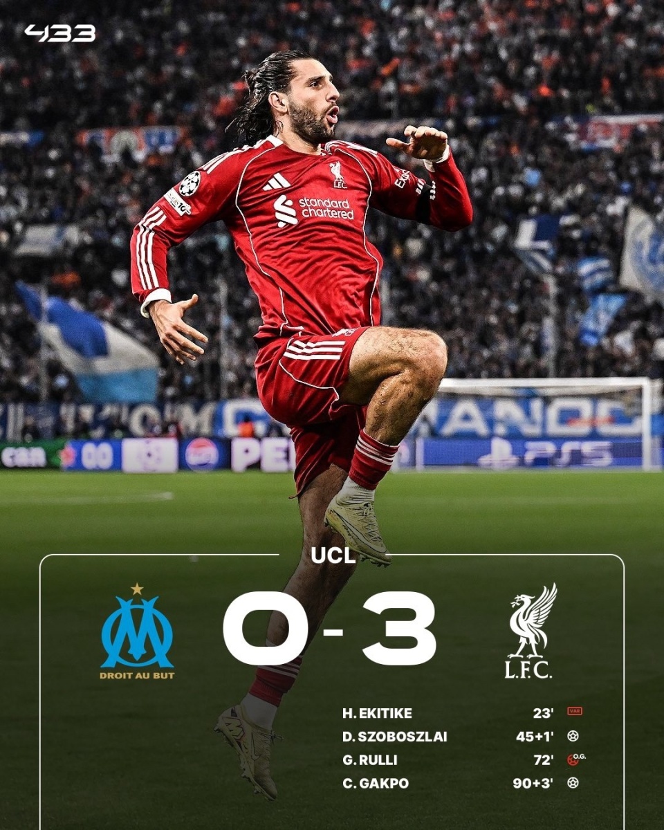 利物浦客场3-0击败马赛,收获欧冠两连胜,进入前八。埃基蒂克进球被吹,阿利松救险,索博斯洛伊任意球破门,弗林蓬造成鲁利乌龙,加克波锁定胜局。