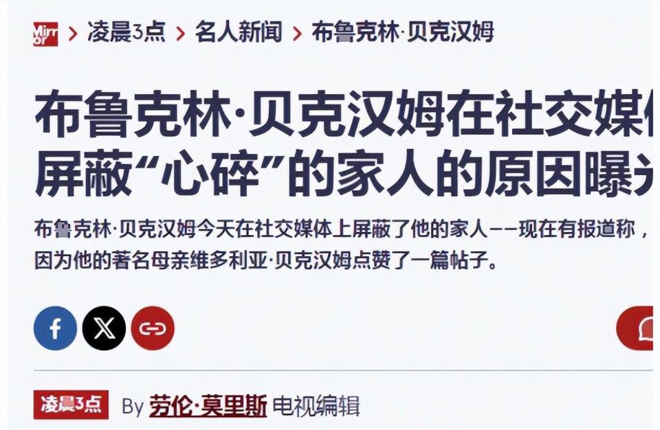 事情闹到台面上,是2026年1月20日。 布鲁克林那篇火药味十足的控诉长文,直接撕下了家里的遮羞布。 他说自己沉默多年,只是为了维持表面的隐私,但如今忍无可忍。 他用上了“虚伪”“伪装”这些词,来形容自己的父母。 这不像儿子在说话,倒像是一个积怨已久的仇家。 更狠的是行动。 早在2025年12月,他就已经单方面切断了所有联系。 母亲维多利亚在某条动态下点了个赞,本想缓和关系,却引来了网友的劝和潮。 这一下彻底惹毛了布鲁克林,他反手就把父母和弟弟妹妹的社交账号全拉黑了。 三儿子克鲁兹后来无奈地对媒体说:“我父母不会主动取关儿子,他们是醒来发现自己被拉黑了,我也是。 ” 一家人的沟通,沦落到要靠媒体传话。