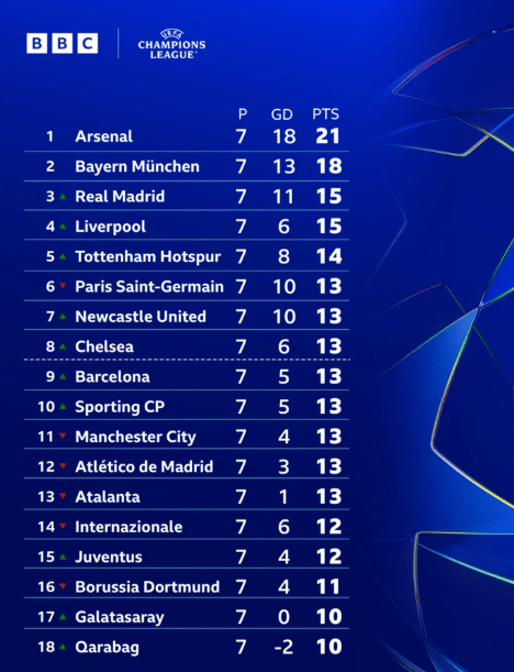 阿森纳是本赛季欧冠唯一保持不败的球队,周二球队以3-1击败国际米兰,米克尔・阿尔特塔的队伍就此锁定联赛阶段前二的席位。