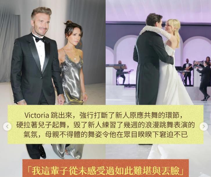 同时宾客声称当维多利亚拉着儿子跳舞的时候,其实场下的气氛是尴尬又无奈,并且她不得体的舞姿太过火了。
