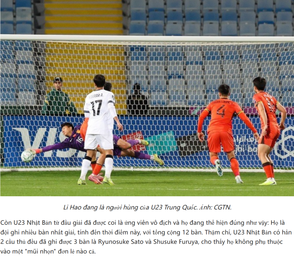 越南媒体《24h》也专门点出了国足门神李昊的名字,他们给出了这样的标题:“哪位U23日本球员能让李昊首次从网窝里捡球?”他们表示,李昊是中国队最耀眼的球员,根据亚足联统计,前5场比赛李昊做出28次扑救,保持0失球,在青年锦标赛中取得这样的成绩非常难得,尤其要考虑到国足的对手实力很强,例如乌兹别克斯坦队。
