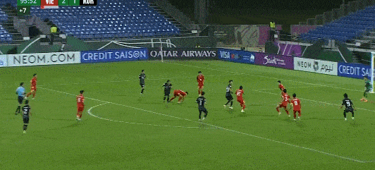 第19分钟,越南队任意球传到禁区被解围,阮泰山跟进远射高出球门。