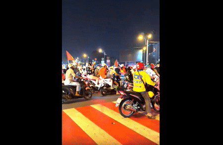 有网友曝光了越南今夜街头的盛况:灯火通明的街道,数万人骑着摩托车走出家门,他们扛着越南的国旗,一起呐喊、跳跃,为球队夺得U23亚洲杯季军而兴奋,为他们23年来首次赢下韩国队而激动!