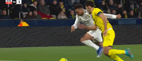 43分钟,皇马快速反击,维尼修斯形成单刀,主裁判定维尼修斯推人犯规在先。