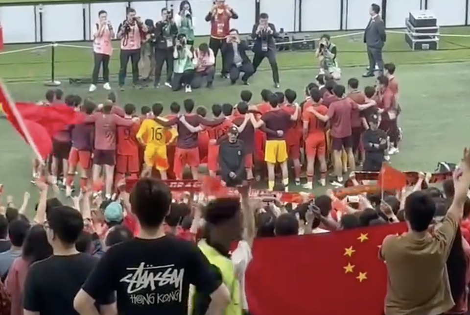 感人一幕!国足0-4后主动致谢球迷 后者挥国旗鼓掌+拍下百人合照