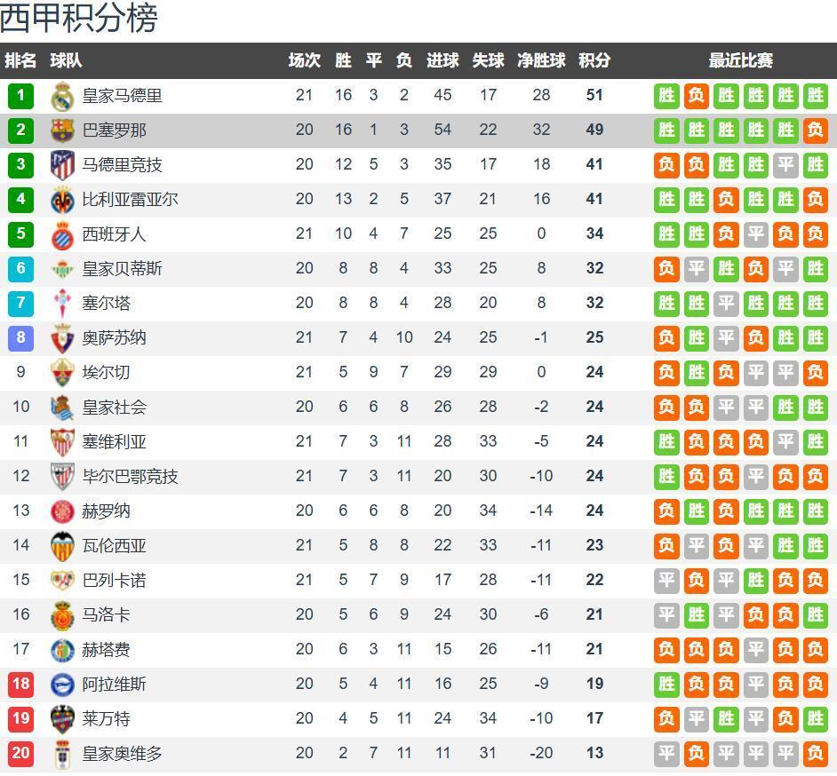 第一:两队情况!西甲20轮战罢,巴萨16胜1平3负积59分排名第二,落后先赛的皇马2分;皇家奥维耶多2胜7平11负积13分排名垫底,深陷降级区。上轮西甲,巴萨爆冷客场1-2不敌皇家社会,联赛九连胜被终结,巴萨输球并非踢得不好,而是运气太差,周中欧冠客场4-2轻取布拉格斯拉维亚;皇家奥维耶多客场2-3不敌奥萨苏纳,联赛13轮不胜。
