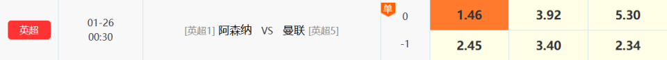 今天前瞻英超比赛,阿森纳VS曼联。