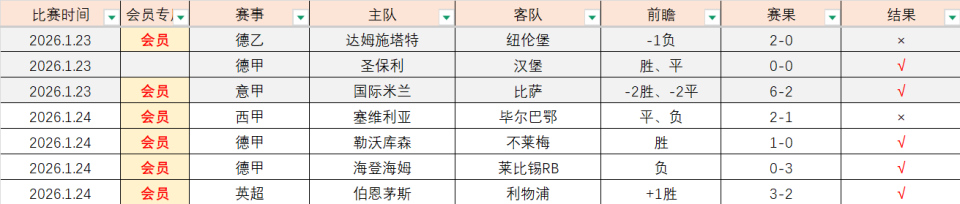 昨天实在有事情太忙,没有更新公开文章,【会员专区】简单发布了4场比赛答对3场,答对了勒沃库森取胜、莱比锡取胜和利物浦被爆冷,只错了一场毕尔巴鄂被绝杀。今天恢复正常,【会员专区】正常周末分析4场,各位参考。
