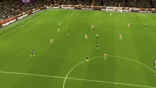 第33分钟,曼联打出快速反击,经过连续传递,B费获得黄金机会,但在萨利巴的干扰下,将球打偏。