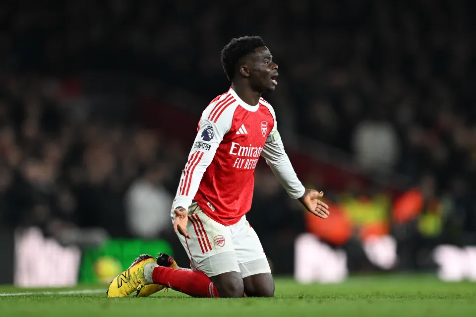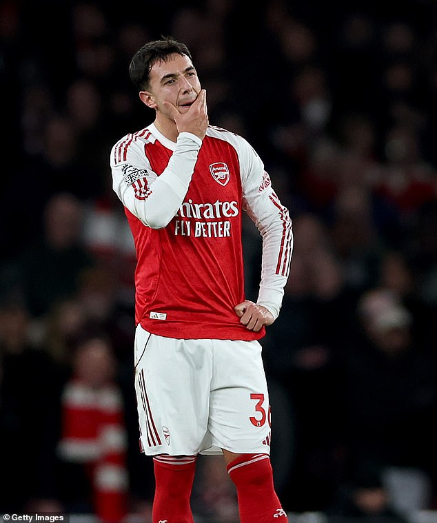 萨卡在禁区内将球挑起,厄德高凌空抽射,皮球打在马丁内斯身上变线入网。
