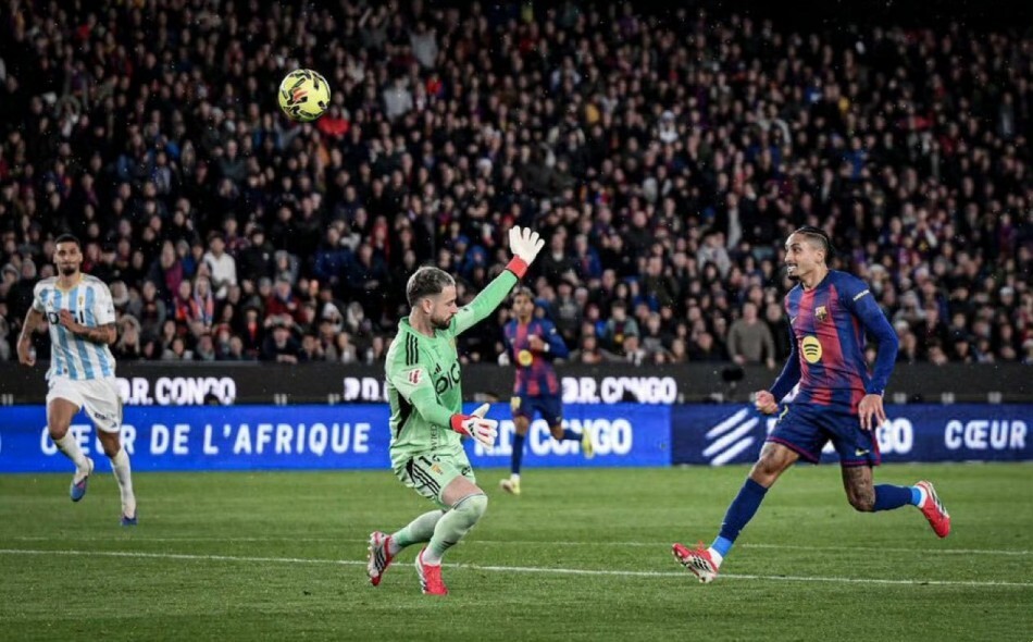 经过了近半个小时的适应,巴塞罗那才逐渐找到了进攻的感觉。第43分钟,亚马尔和埃里克加西亚做出精彩2过2配合,随后将球低平球送入禁区,莱万铲射遗憾偏出球门。随后拉菲尼亚凌空劲射,再度被门将奋力挡出。半场比赛结束,双方均未破门。