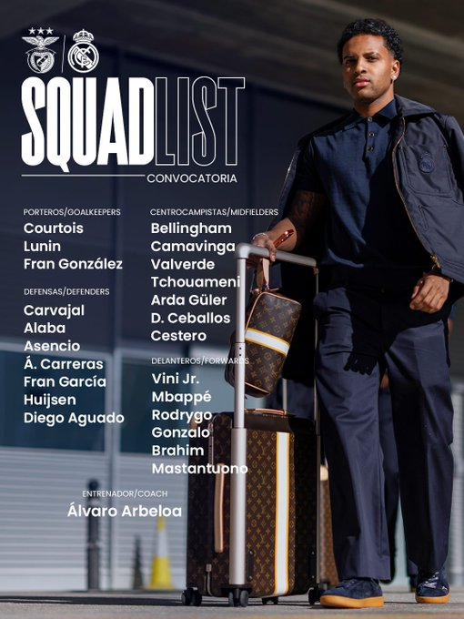 皇马vs本菲卡大名单:姆巴佩,维尼修斯,贝林厄姆领衔
