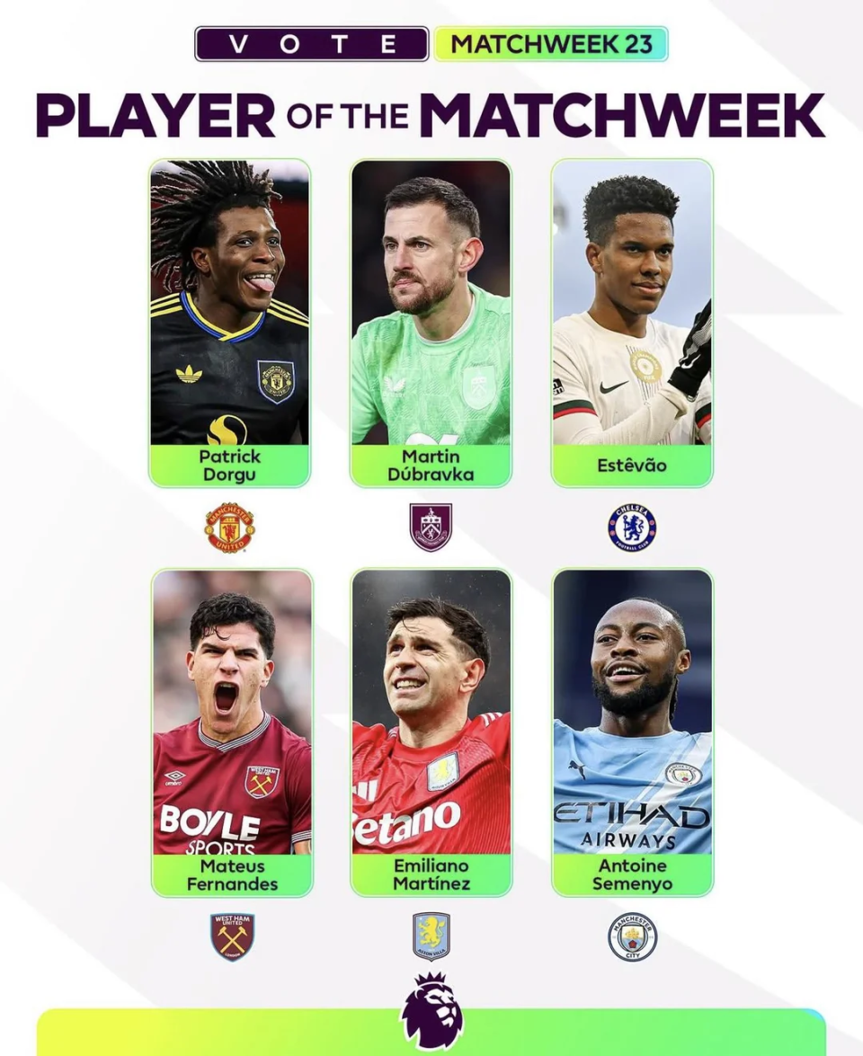 他还凭借英超第23轮的精彩表现入围当轮最佳球员候选名单。