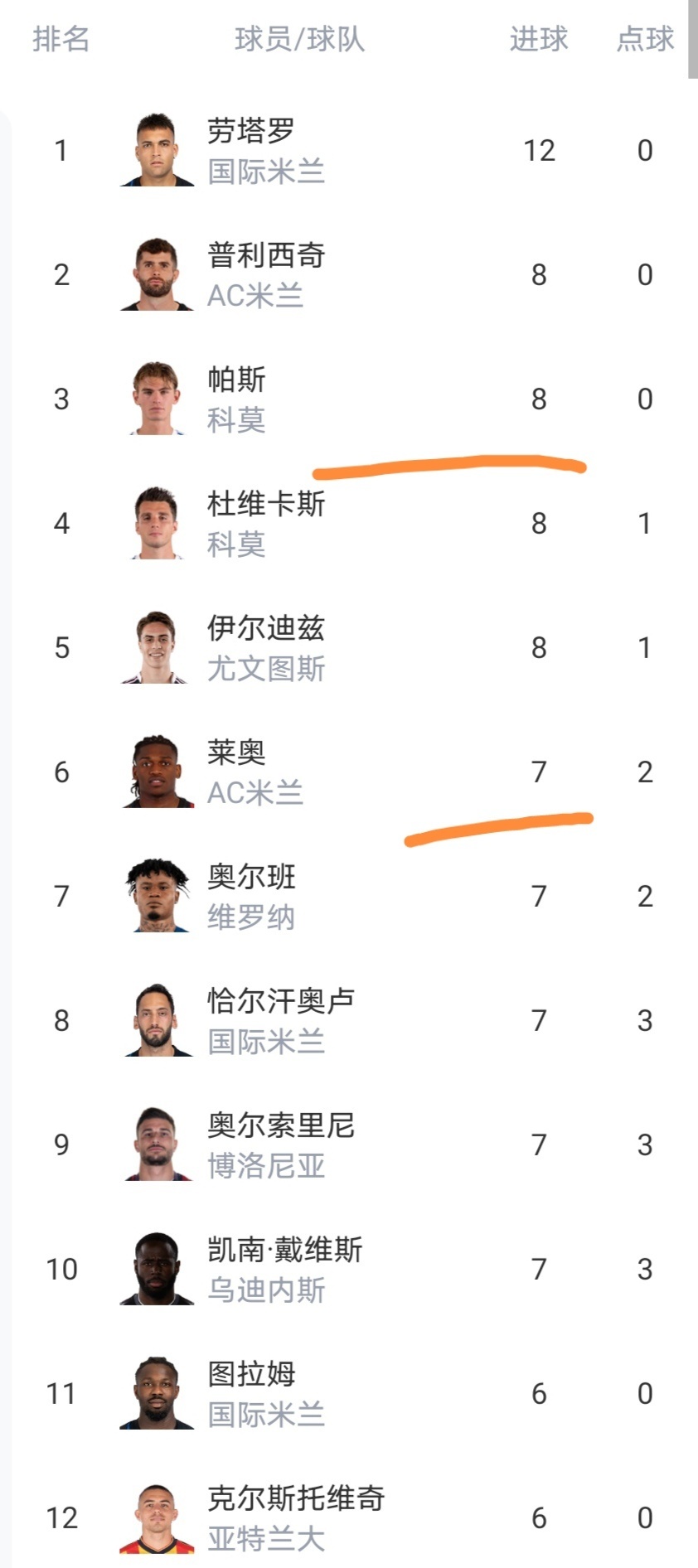 射手榜劳塔罗、普利西奇、帕斯、杜维卡斯排名前四,可以看到意甲射手榜的争夺很是激烈啊,并没有一枝独秀的球员,所以想拿意甲金靴不是那么容易的。