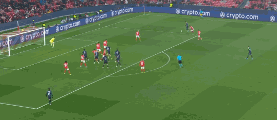 第90+8分钟,本菲卡门将特鲁宾,接到队友开出的任意球后,禁区内头球建功,将全场比分定格为了4-2。