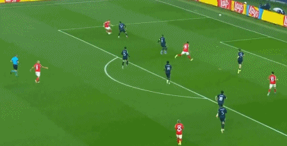 落后2球,皇马终于进行换人,卡马文加和罗德里戈出战,撤下楚阿梅尼和马斯坦托诺。第58分钟,罗德里戈右路突破做球,居莱尔倒三角传中,姆巴佩扫射破门完成梅开二度好戏,皇马扳回一城,2-3!至此,姆巴佩欧冠7场打进13球,在射手榜遥遥领先。