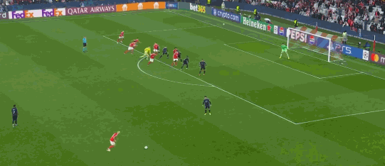 第30分钟,姆巴佩头球破门,本菲卡主场0-1落后。不过,本菲卡在第36分钟打出反击,谢尔德鲁普头球破门。上半场补时阶段,琼阿梅尼禁区里拉人,本菲卡获得点球,帕夫利季斯主罚命中,本菲卡2-1领先。