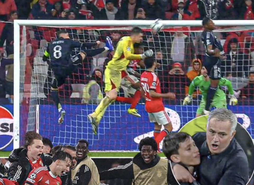 北京时间1月29日凌晨,欧冠联赛阶段第8轮,也就是最后1轮。本菲卡主场对阵皇马。第98分钟,本菲卡门将绝杀。穆里尼奥的球队4-2击败皇马,靠1个净胜球的优势拿到了第24名的排名,压哨晋级。