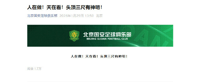 随后,北京国安在社交媒体公开回应,“人在做,天在看!头顶三尺有神明!”